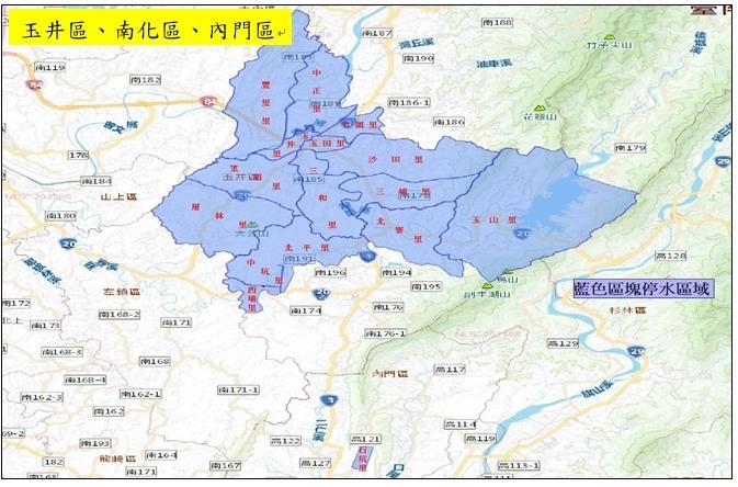 - 善化區:除昌隆里停水外,其餘里均壓降。