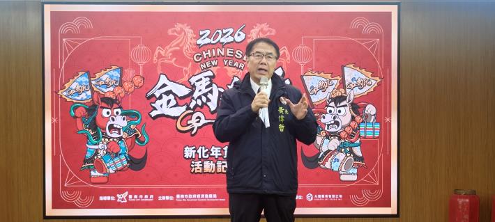 2026歡慶臺南年-新化年貨大街活動於今 (27) 日在永華市政中心新聞發布室舉辦活動記者會,由新化在地表演團隊帶來熱鬧開場演出,為年節活動揭開序幕。新化年貨大街將於2月10日至2月15日於新化老街及大目降廣場周邊盛大舉行,連續六天陪伴市民與遊客迎接嶄新的金馬年。